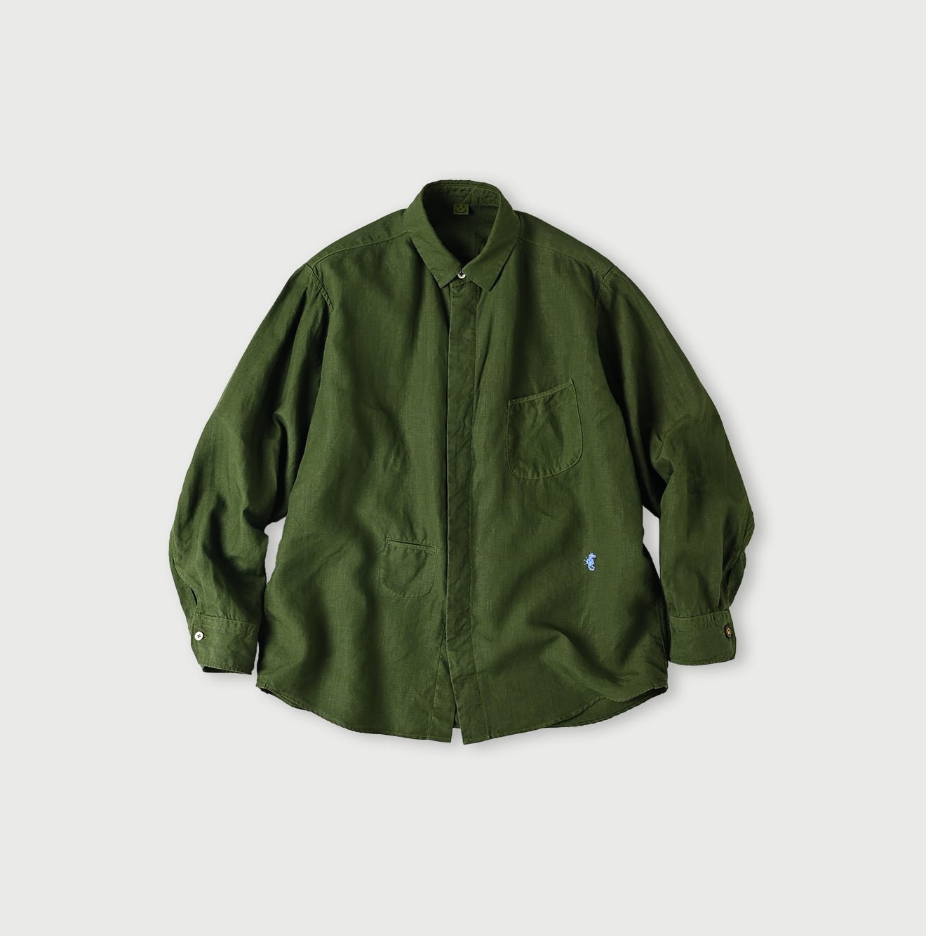 Double stitching running from the underarm. fine edge stitching along the shoulder yoke. and piped pocket openings—each detail is executed with precision to match the quality of the fabric. The vibrant hues created through plant-based dyeing techniques are also part of the appeal. This piece reflects the Japanese craftsmanship at the heart of 45R.