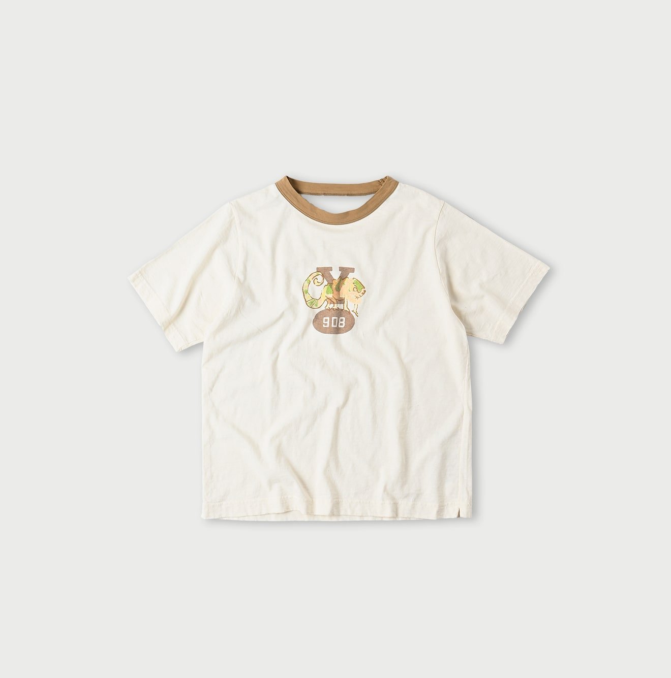 A sporty cleric collar meets a quietly charming chameleon. peeking out from behind the logo—one foot playfully lifted. This 908 T-shirt is a unisex piece. designed to bring a light-hearted touch to everyday wear.