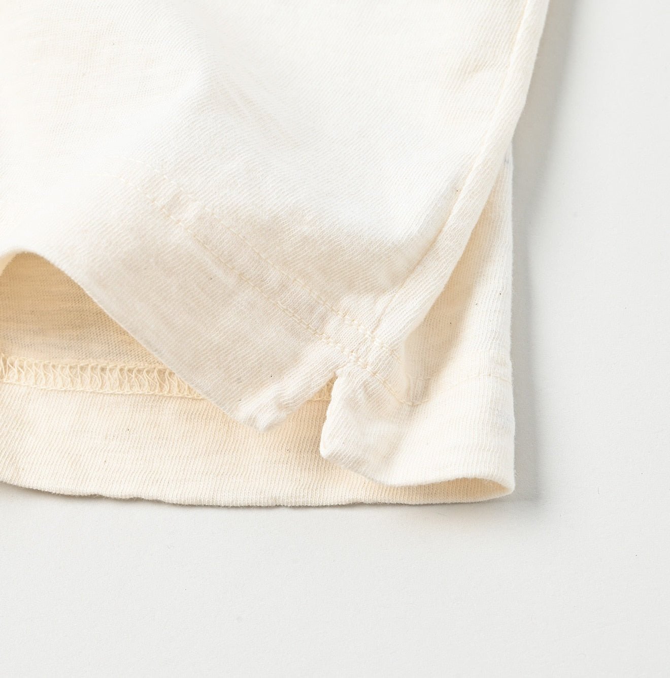 Knit with slightly thicker slub yarn. the jersey fabric is soft and airy. settling naturally against the skin. Over time. its texture deepens. becoming a familiar part of daily life—a piece that quietly supports you. day after day.