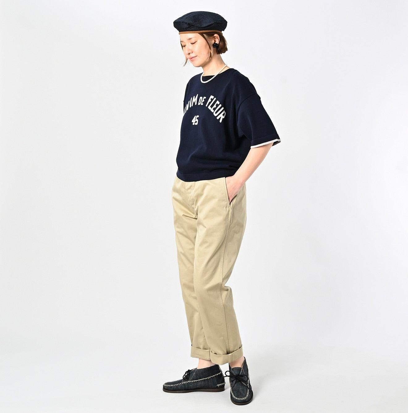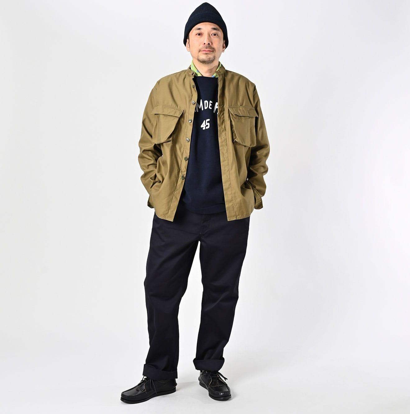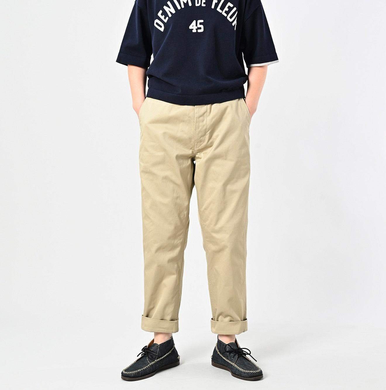 Crafted from rugged chino fabric with a distinct. textured weave. these trousers are built for durability. Over time. they mold to your body. developing a unique character—subtle fading. raised stitching. and a beautifully worn-in feel. A true testament to Japanese craftsmanship. this piece reflects 45R’s dedication to quality. becoming more personal with every wear.