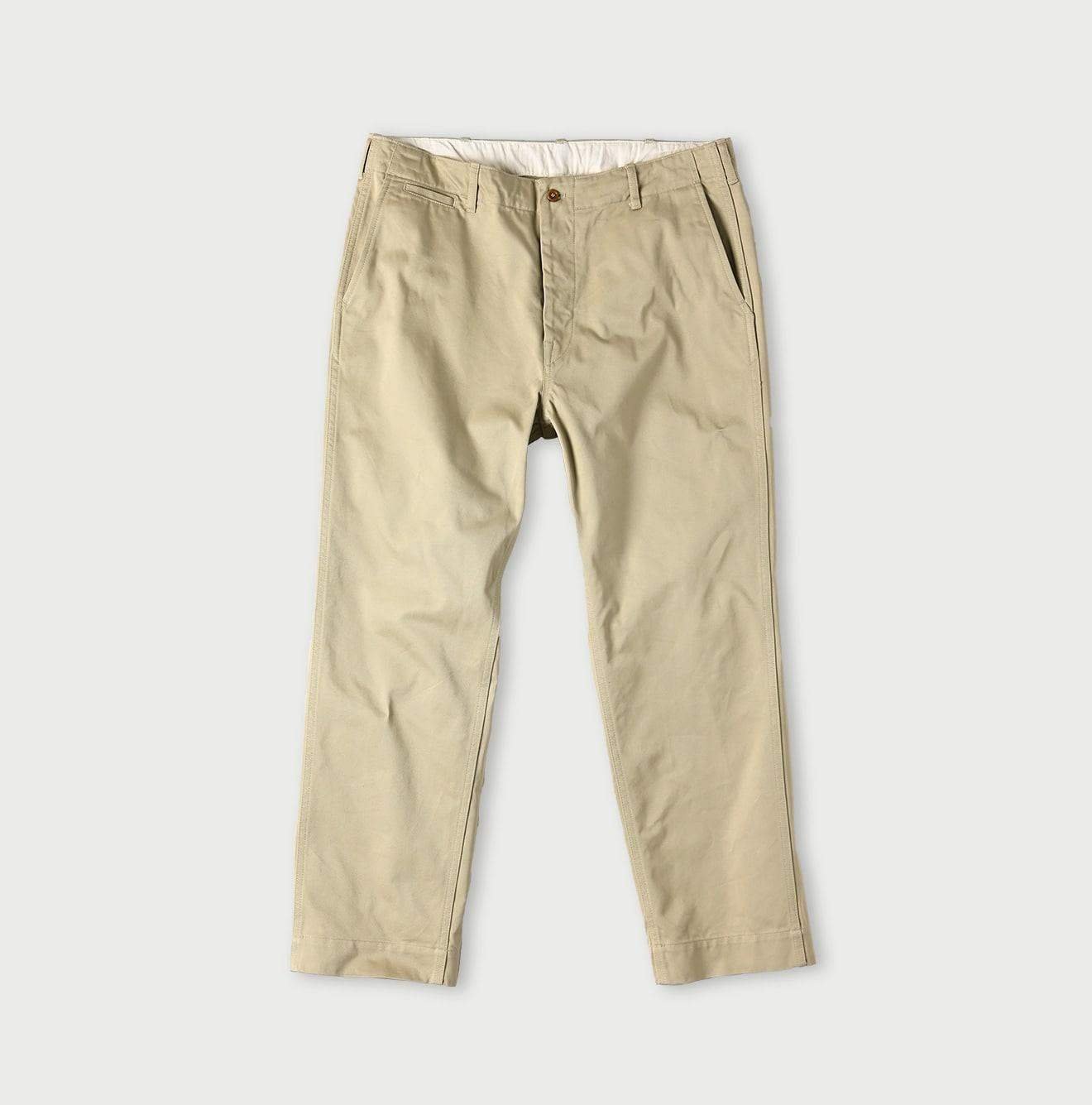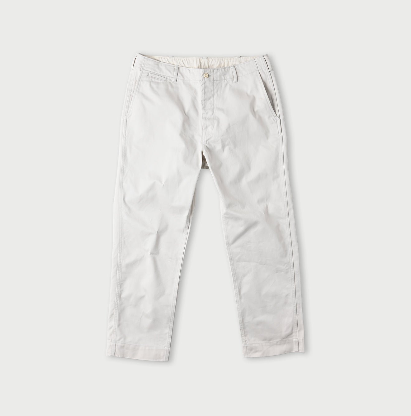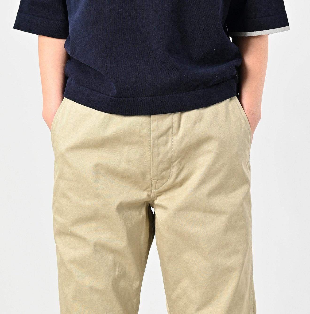 Crafted from rugged chino fabric with a distinct. textured weave. these trousers are built for durability. Over time. they mold to your body. developing a unique character—subtle fading. raised stitching. and a beautifully worn-in feel. A true testament to Japanese craftsmanship. this piece reflects 45R’s dedication to quality. becoming more personal with every wear.
