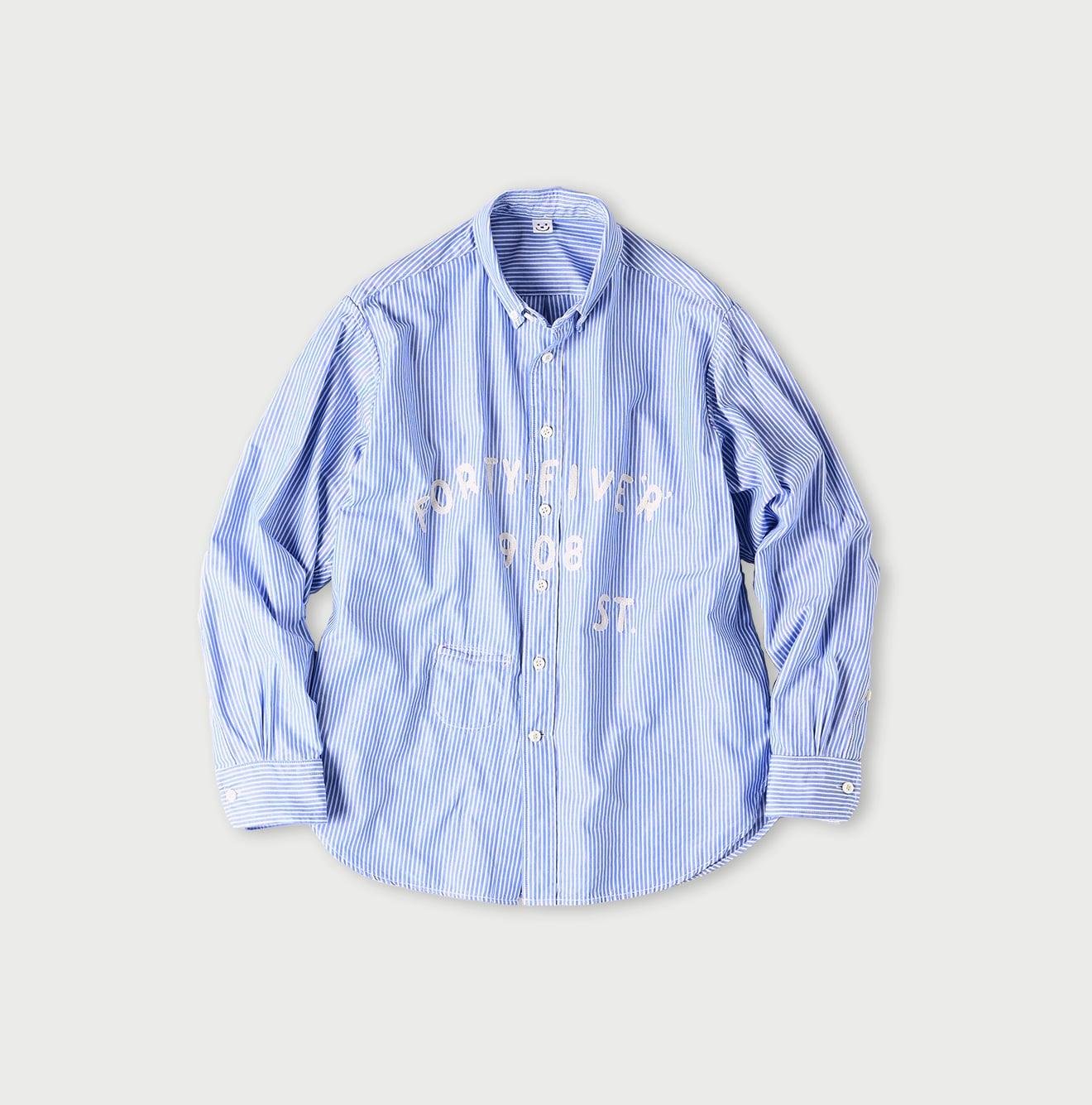 This unique shirt reimagines the essence of a classic college sweatshirt. featuring an embroidered logo for a refined yet casual touch. Adding a playful detail. the inner placket is adorned with a neatly stitched bandana fabric. making it a perfect blend of laid-back charm and thoughtful design.