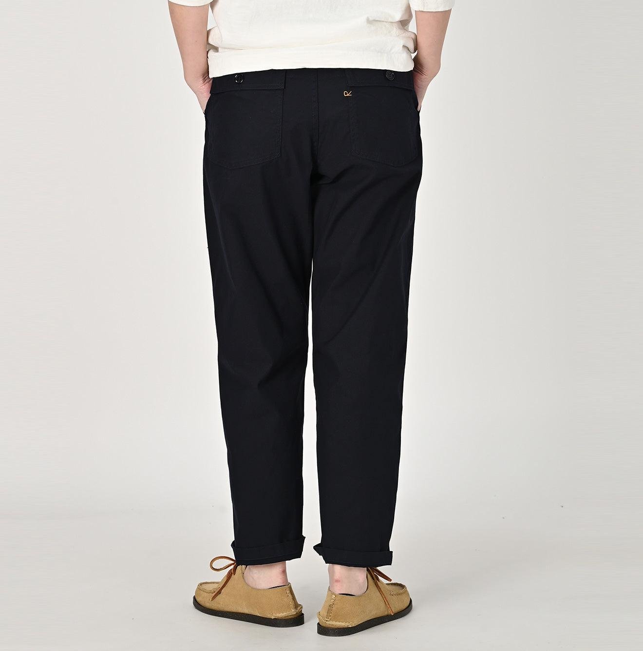 Originally designed as work pants for the military. Baker Pants boast a spacious waist area with a sleek silhouette. They are highly functional with generously sized pockets for convenience.