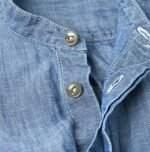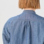 Crafted from a woven blend of flax-colored linen and indigo blue. this dungaree fabric has a natural lightness that pairs beautifully with the feel of a sea breeze. The linen. now a rare and valuable material. lends the shirt both structure and fullness. Its textured. grainy finish evokes the refreshing sensation of summer against the skin.