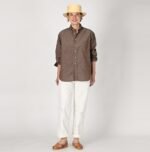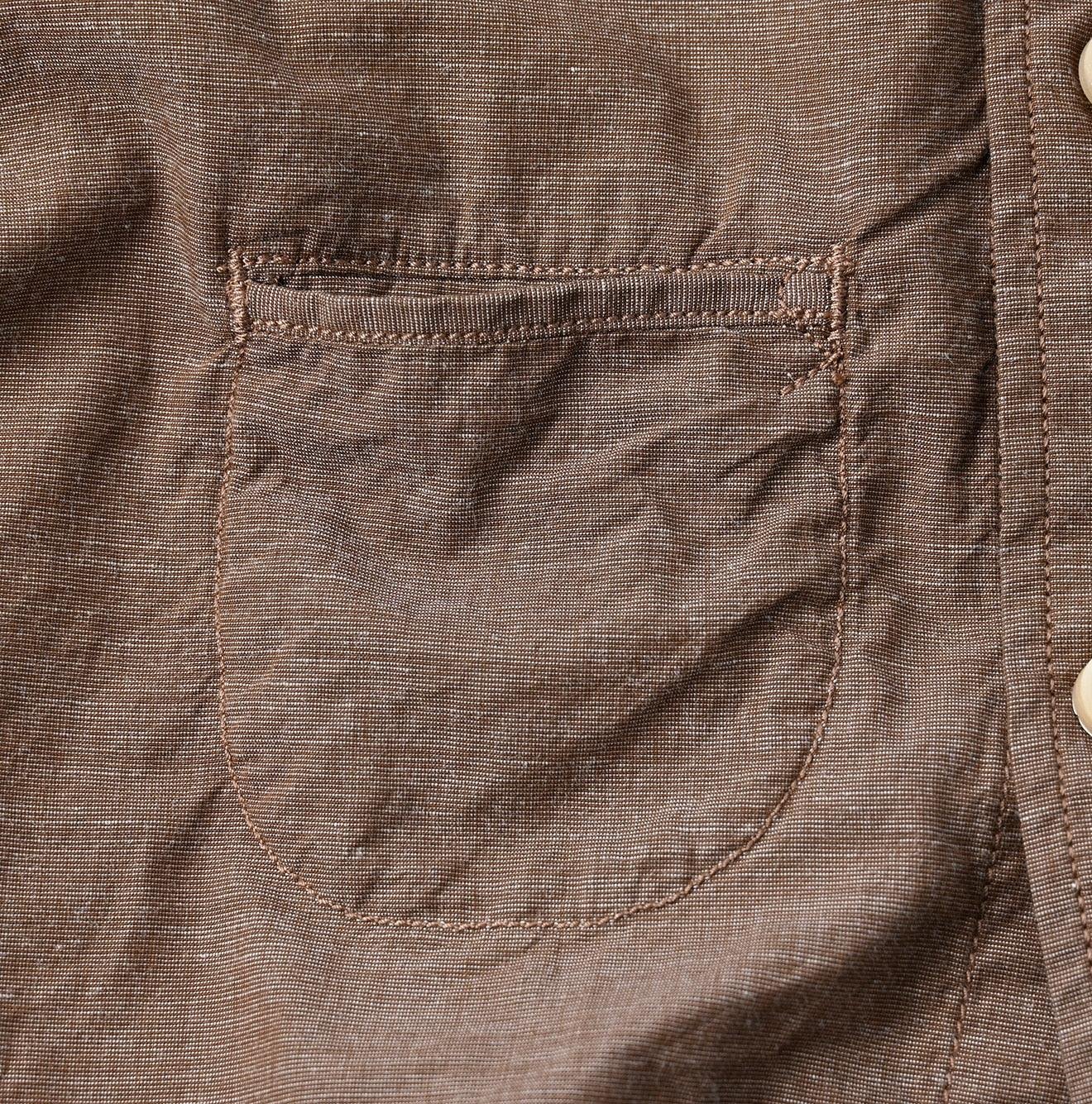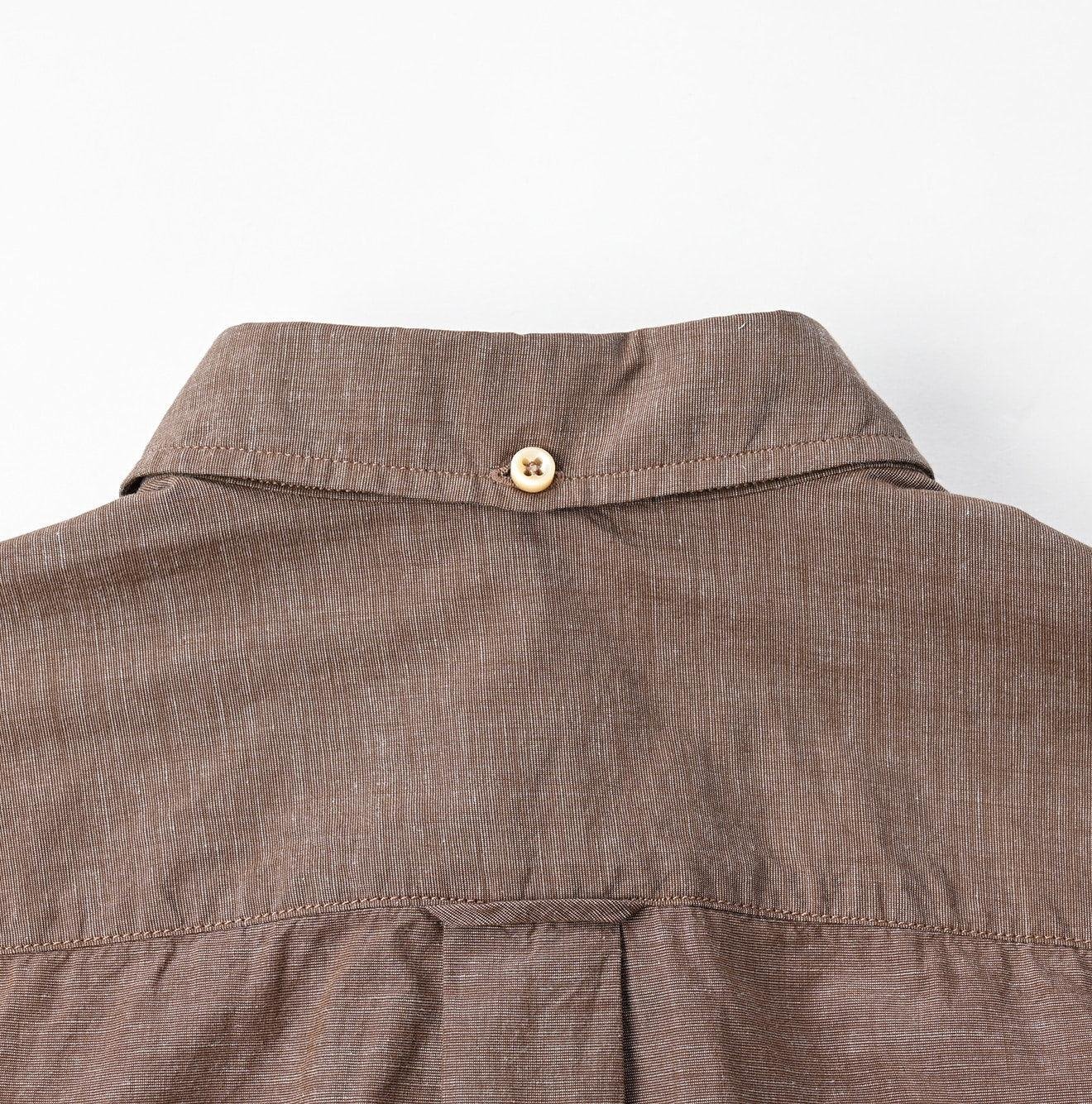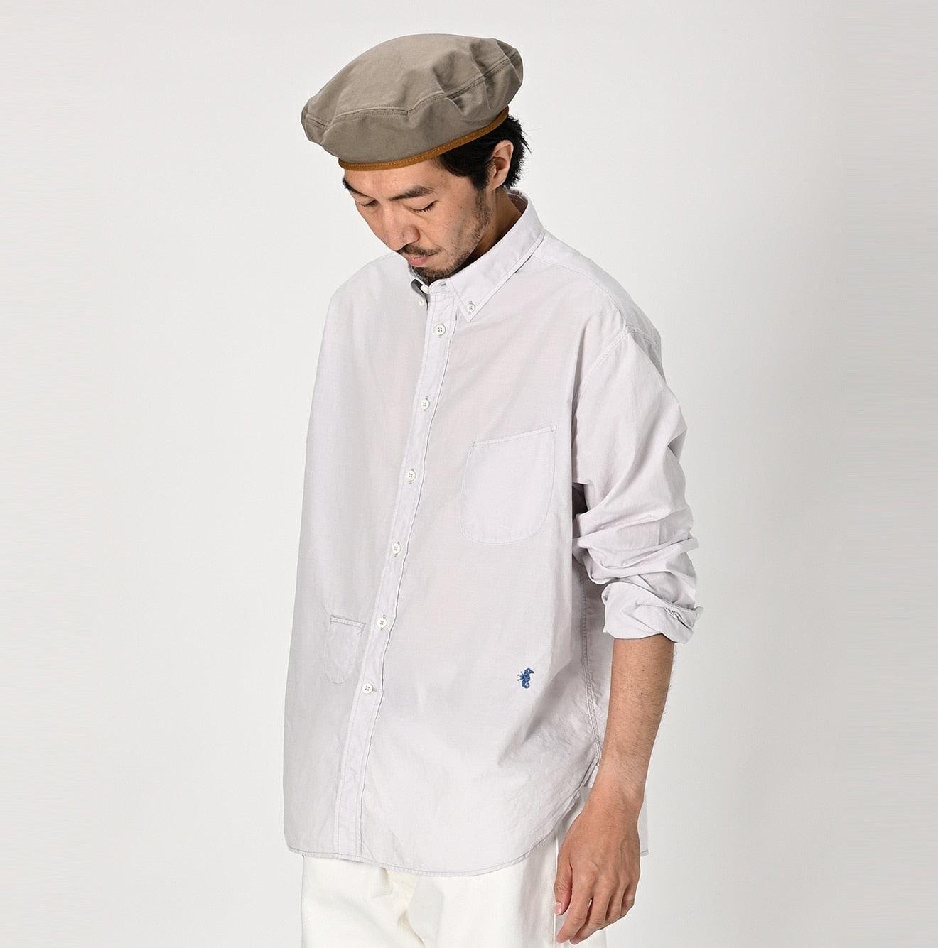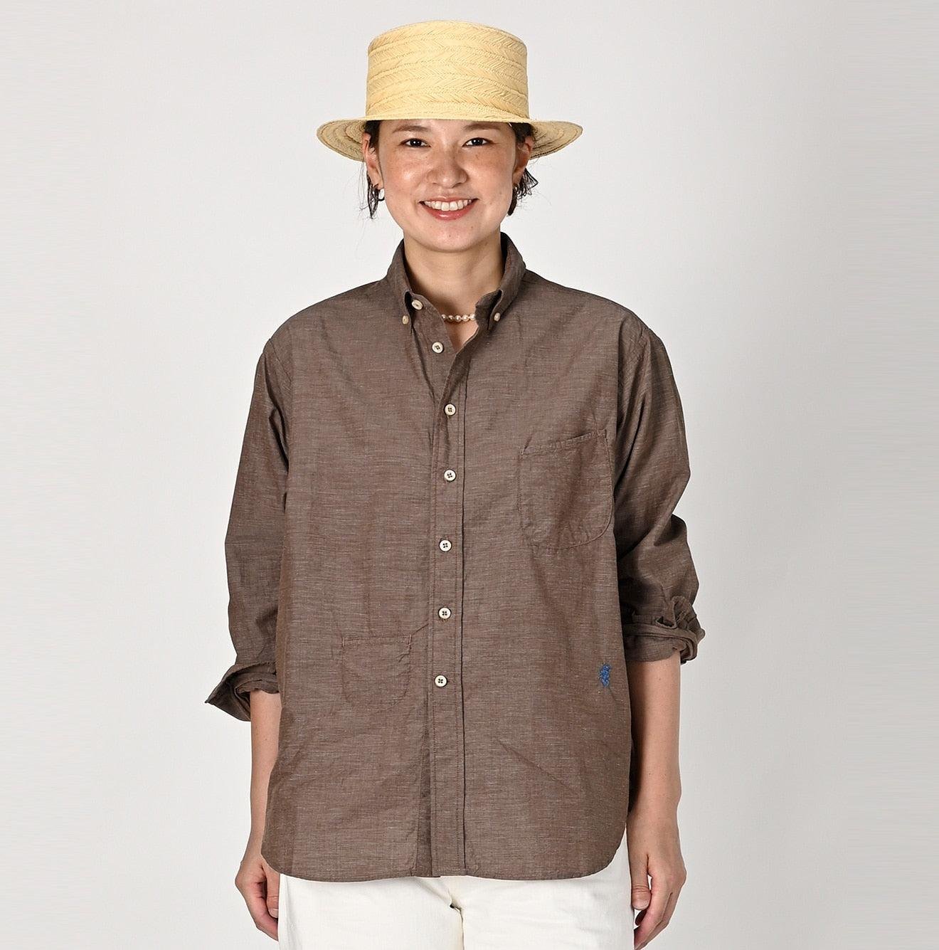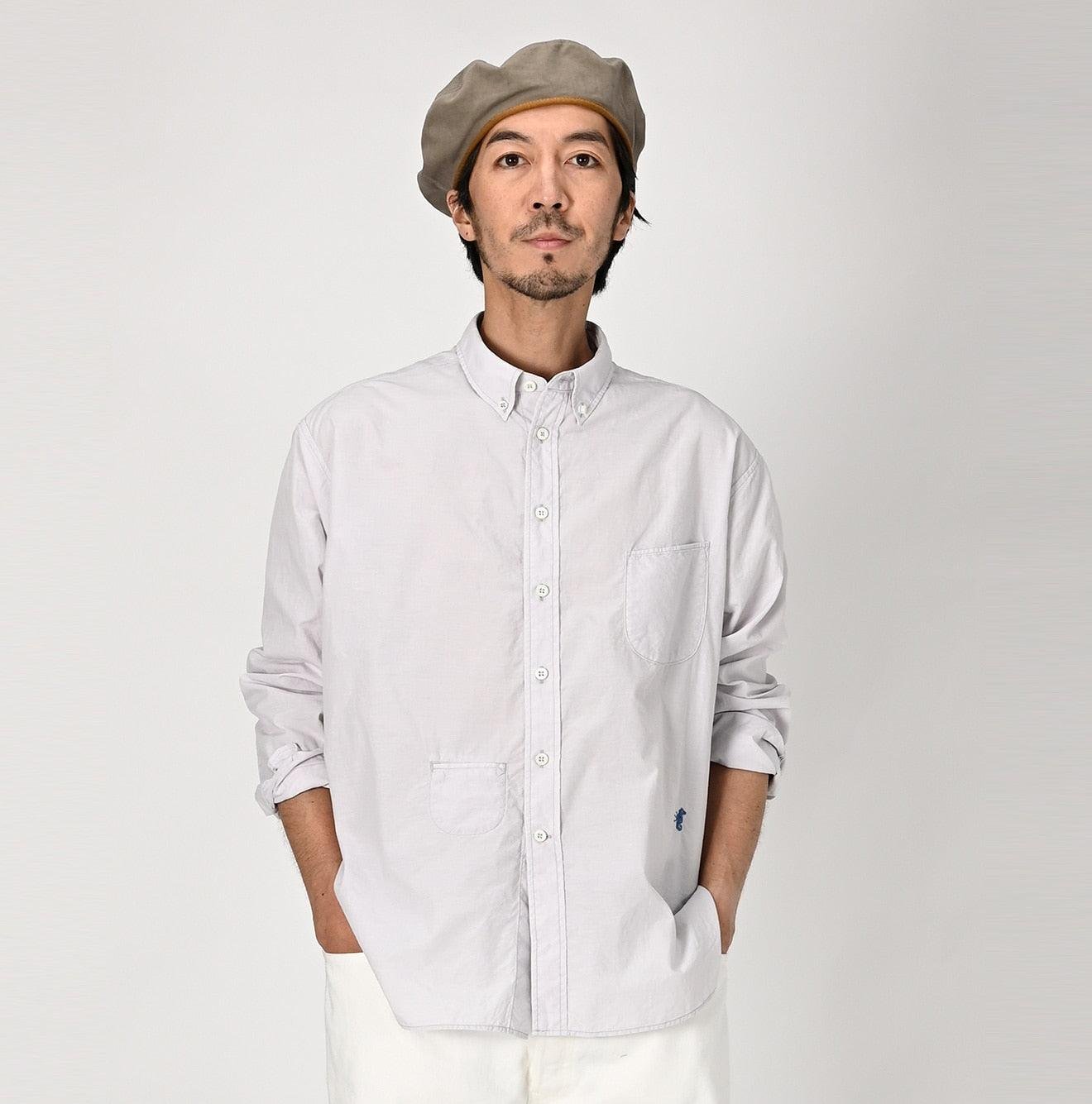 Crafted from cotton that has been nurtured under the sun. the yarn is spun and woven slowly using white threads in the warp and colored threads in the weft. This meticulous process creates a beautiful pattern that looks like it has been brushed on. or hakeme. This shirt is lightweight and airy. making it ideal for hot and humid seasons.
