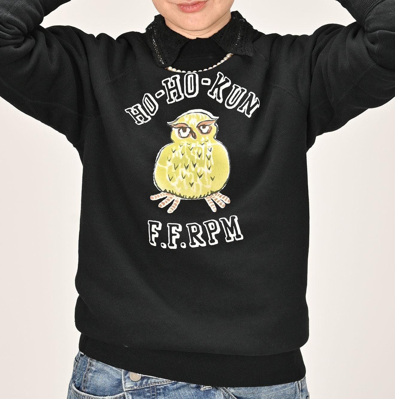 The owl character. Hoho-kun. is a god of good luck. We’ve printed him using rare flocking. which over time will develop a vintage-like character that enhances its charm. reflecting the timeless appeal of 45R’s Japanese craftsmanship.