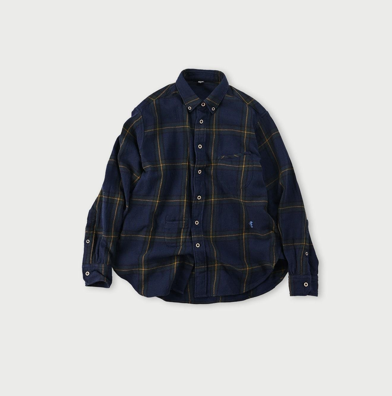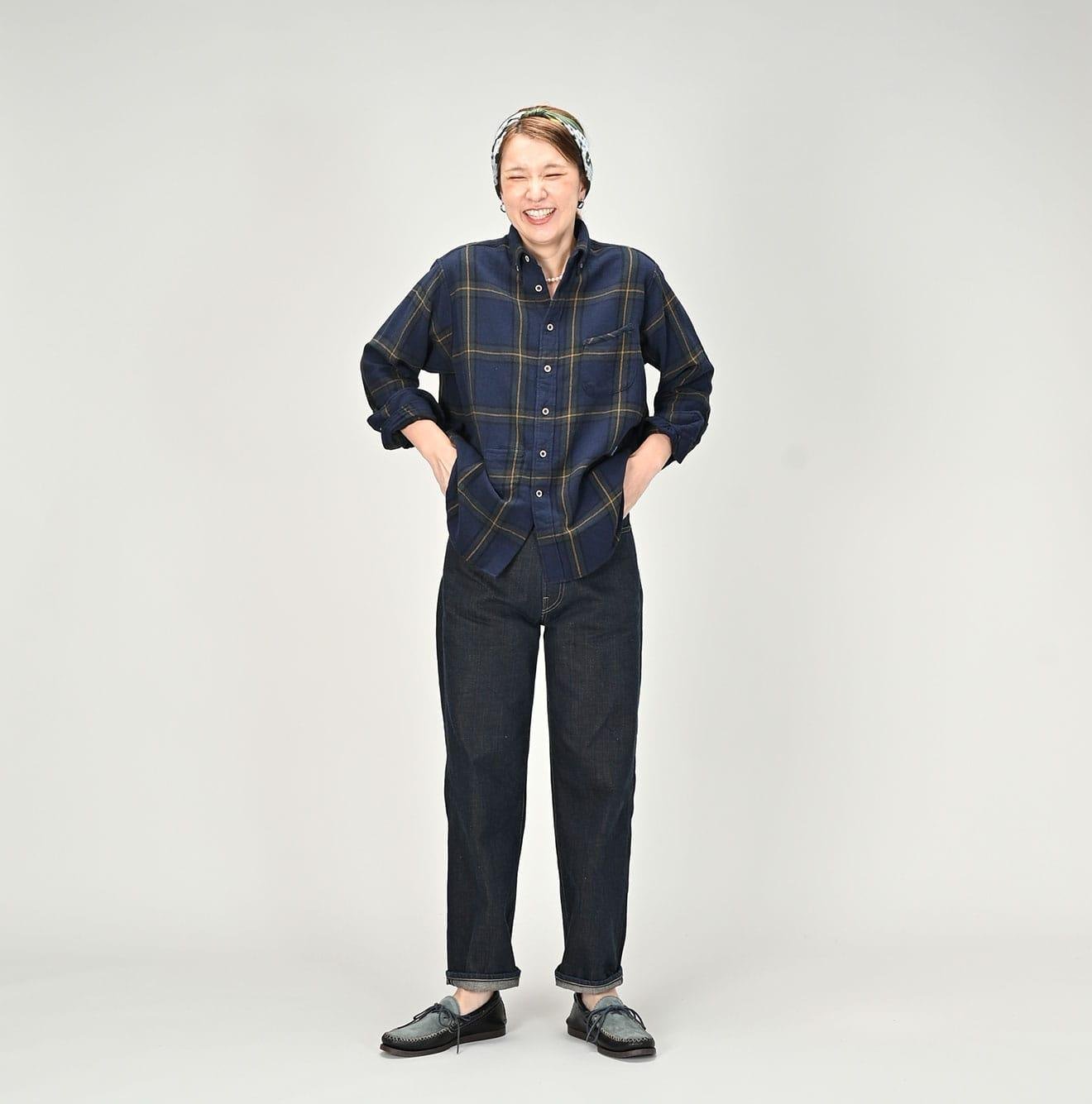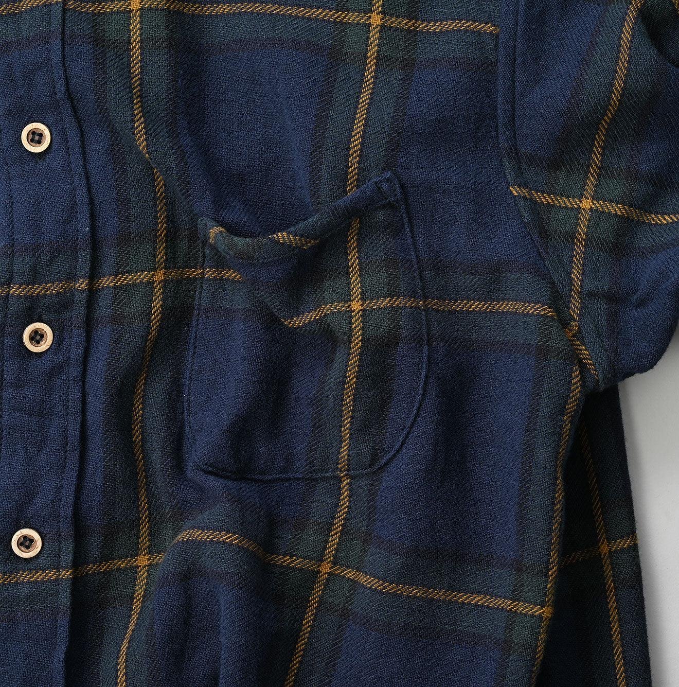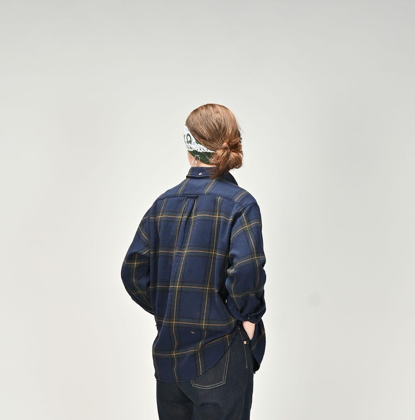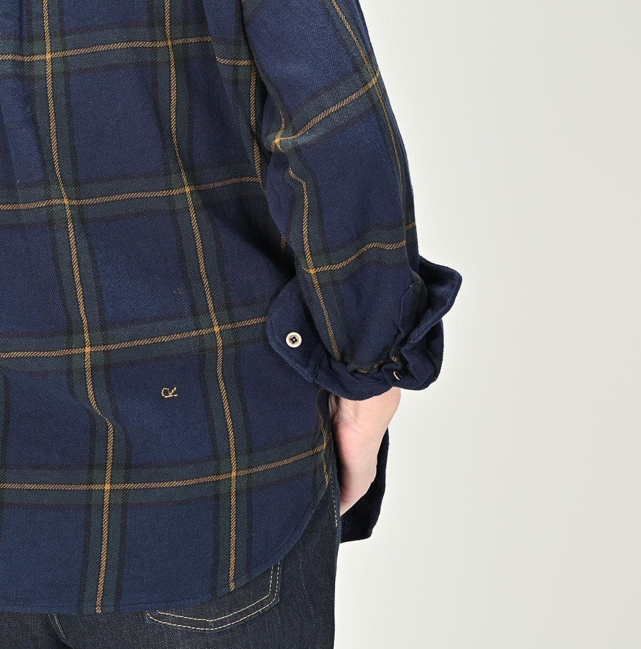 The flannel fabric. slowly woven on old machines in India passed down through generations. has a rustic texture and offers a light. gentle feel when worn. This unique flannel. no longer producible in modern Japan. is a precious material that we are committed to preserving for the future.