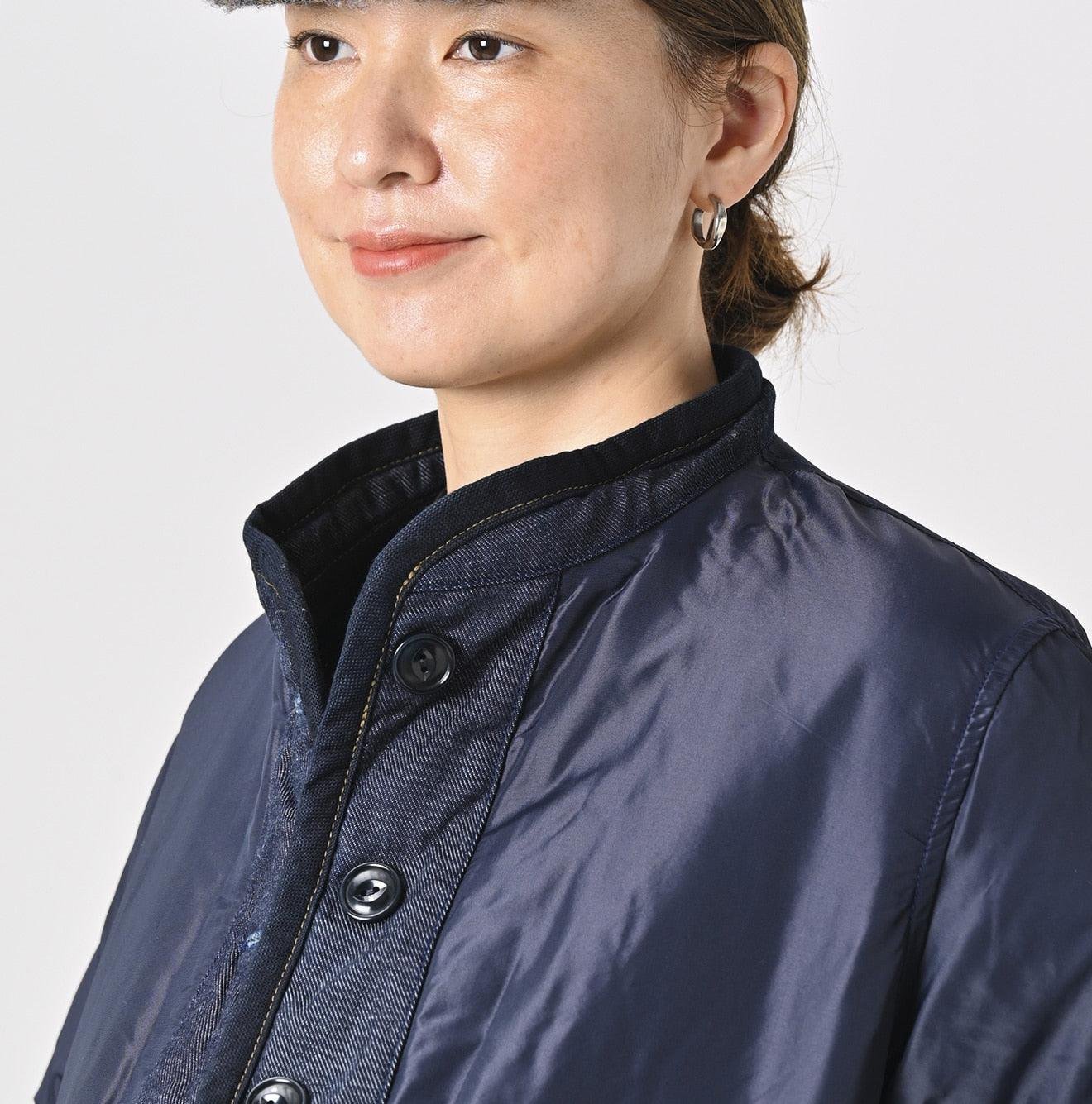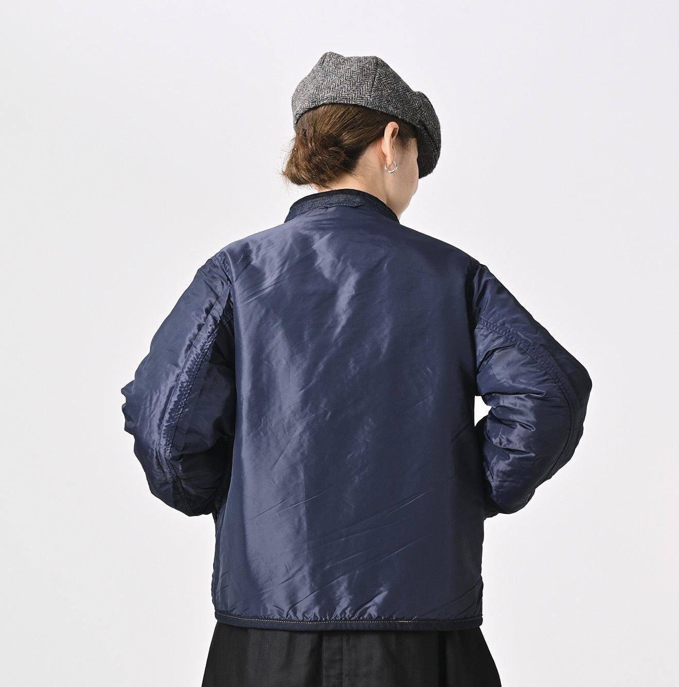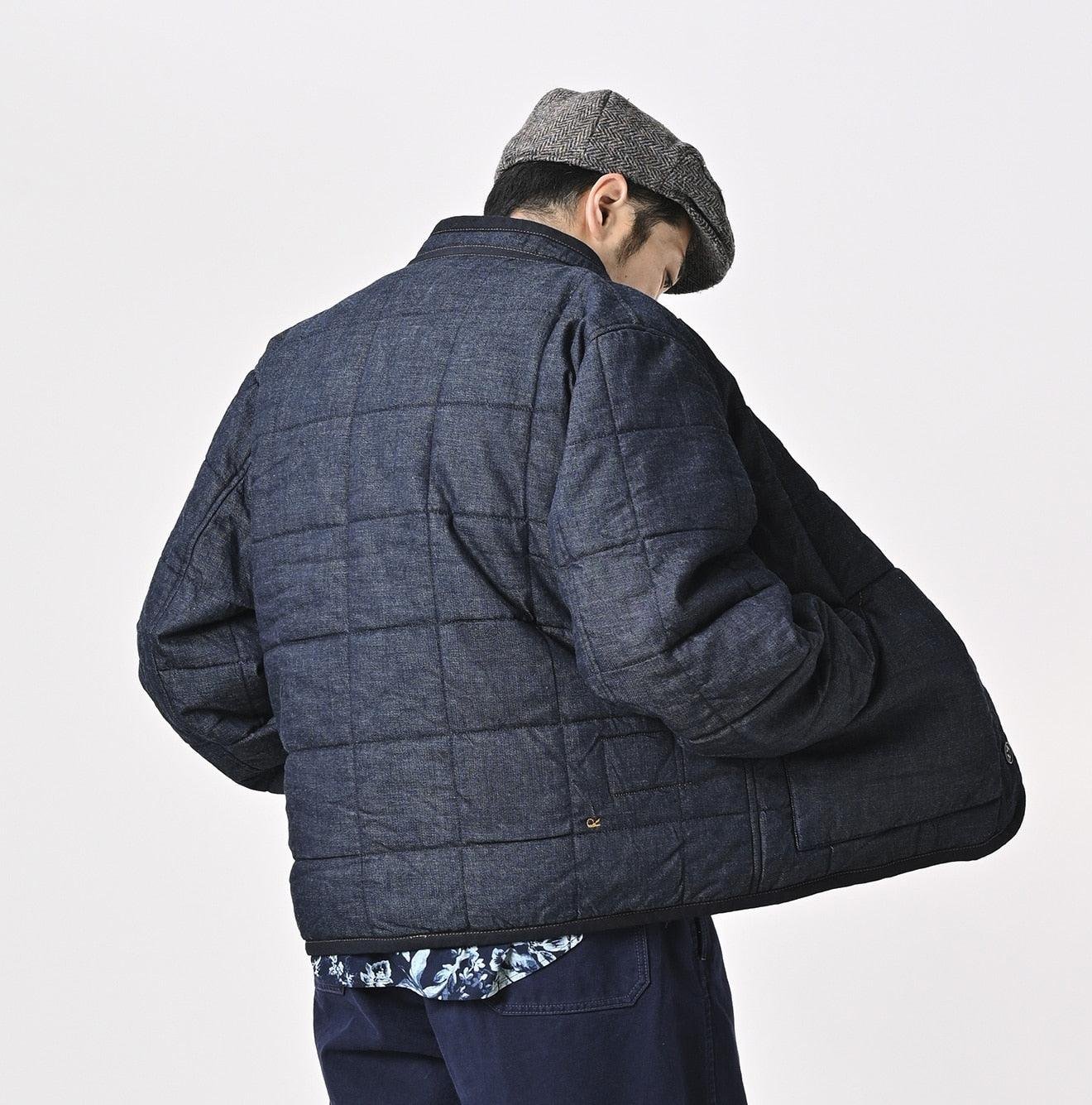 The lining is made from thick nylon inspired by the nostalgic textures of American vintage styles. This rugged combination of denim and nylon creates outerwear that is lightweight. warm. and hand-washable. blending functionality with timeless design. This piece is a perfect example of Japanese craftsmanship and thoughtful attention to detail.