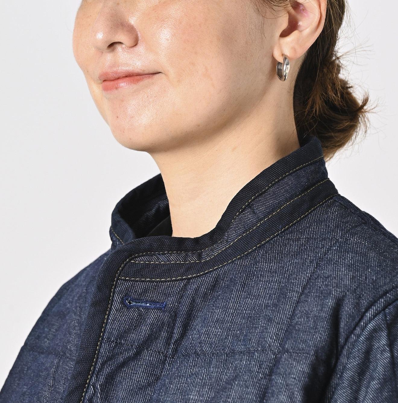 Crafted from 45R’s signature Petit Denim. the fabric is woven with left-twisted yarn into a left-hand twill. resulting in a tightly textured and durable surface. Soft quilting with a warm filling enhances comfort and practicality.